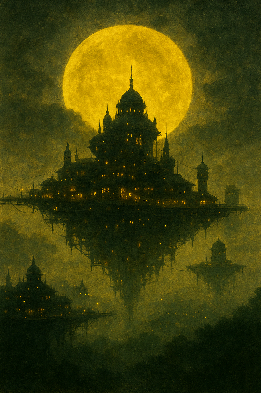 A lyrical science-fantasy where a living sky-city awakens—and three souls follow its song.